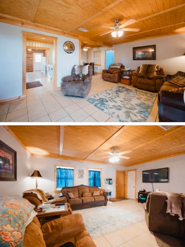 One of our first huge projects was our home in Odessa, TX. It started out as a 2 bedroom, 1 bath camp house. The previous owners had filled it full of stuff and moved out into a nearby trailer. This is the home as it looked when we moved away in 2024. We did all the renovations ourselves except for the glass block, rock work, and stucco. In the end, we had a 5 bedroom, 2 bath home and a 2 bedroom, 1 bath “gameroom” on the property.