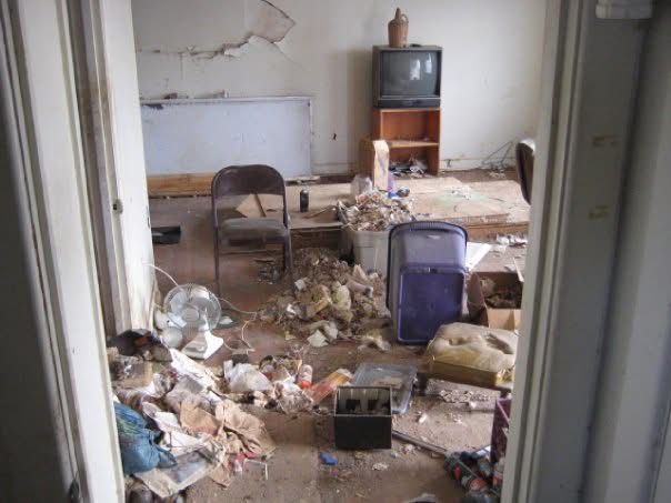 Bathroom cleaned out, but not yet cleaned up